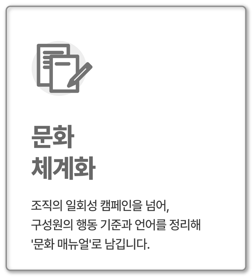 "조직의 원칙과 브랜드의 방향을, 매뉴얼로 완성합니다."